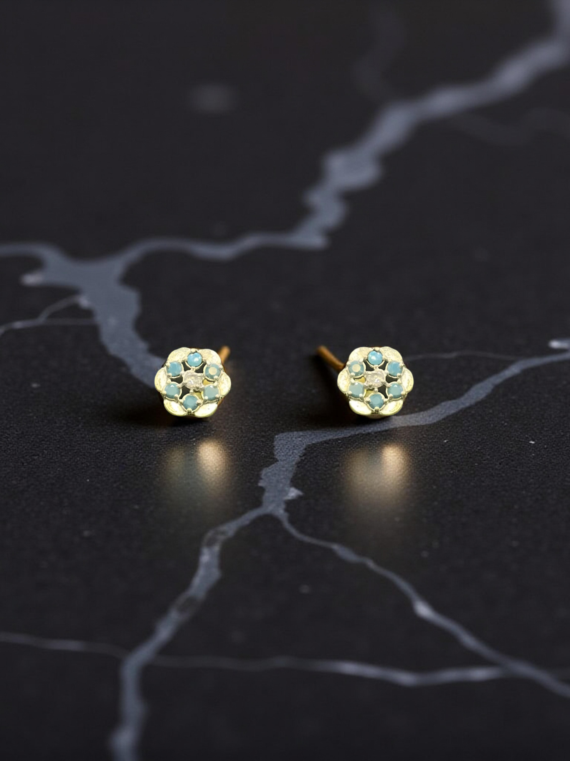 Elegant floral gold studs adorned with delicate turquoise stones for a timeless charm.