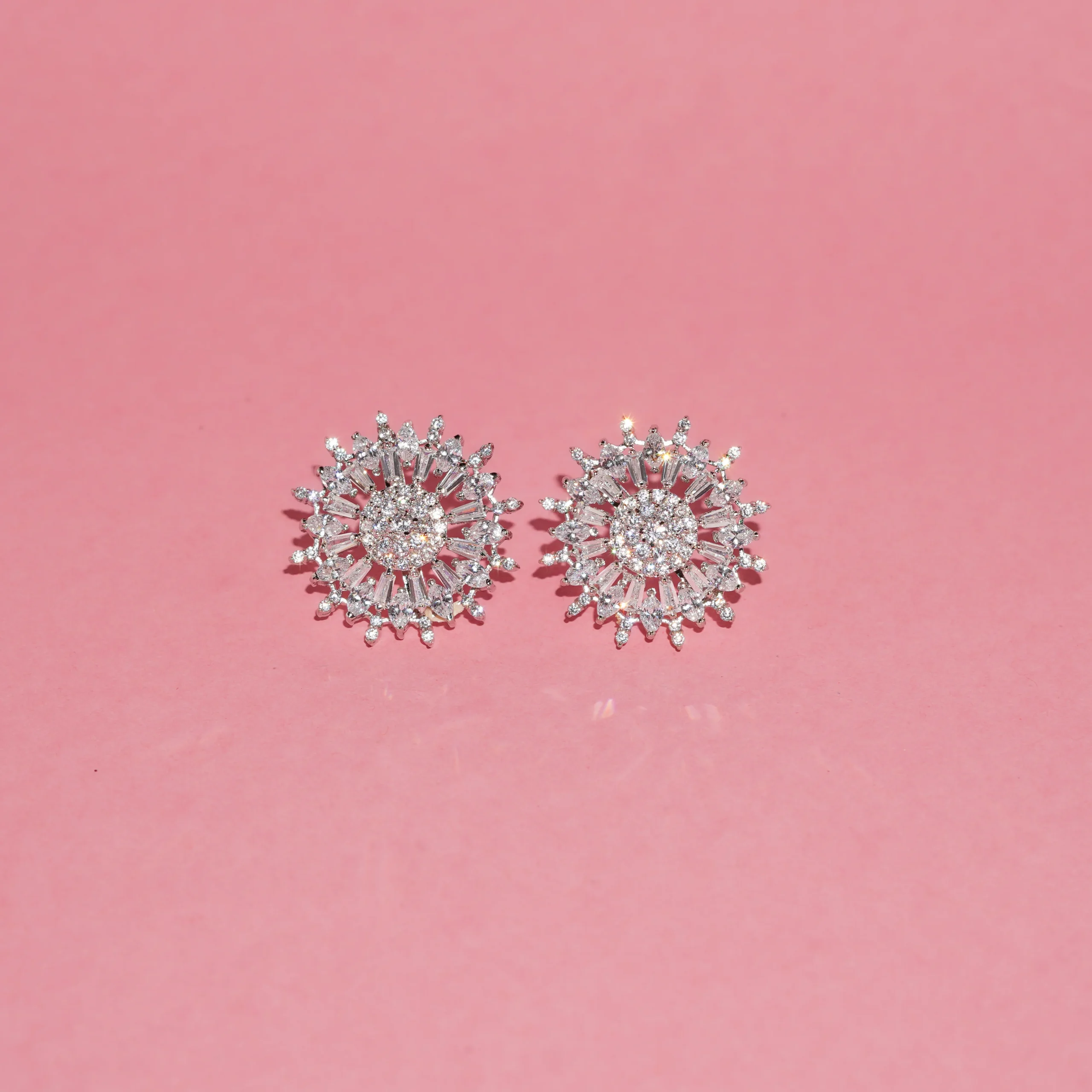 Dazzling starburst earrings with brilliant-cut diamonds that sparkle like constellations against a night sky.
