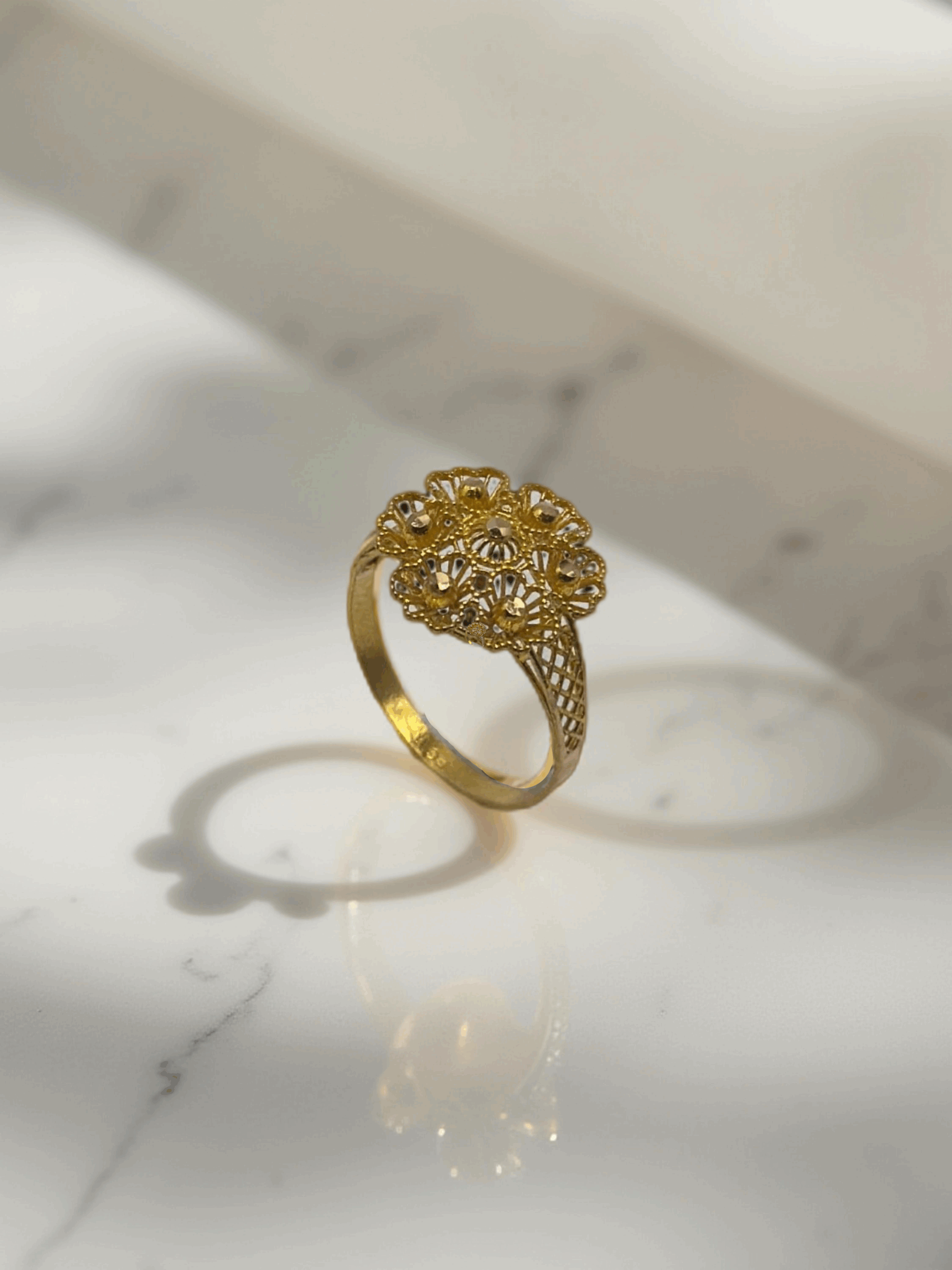 The Daisy Radiance Ring is a fine blend of elegance and simplicity. Its subtle floral detailing adds a graceful touch, making it suitable for everyday wear as well as special events.