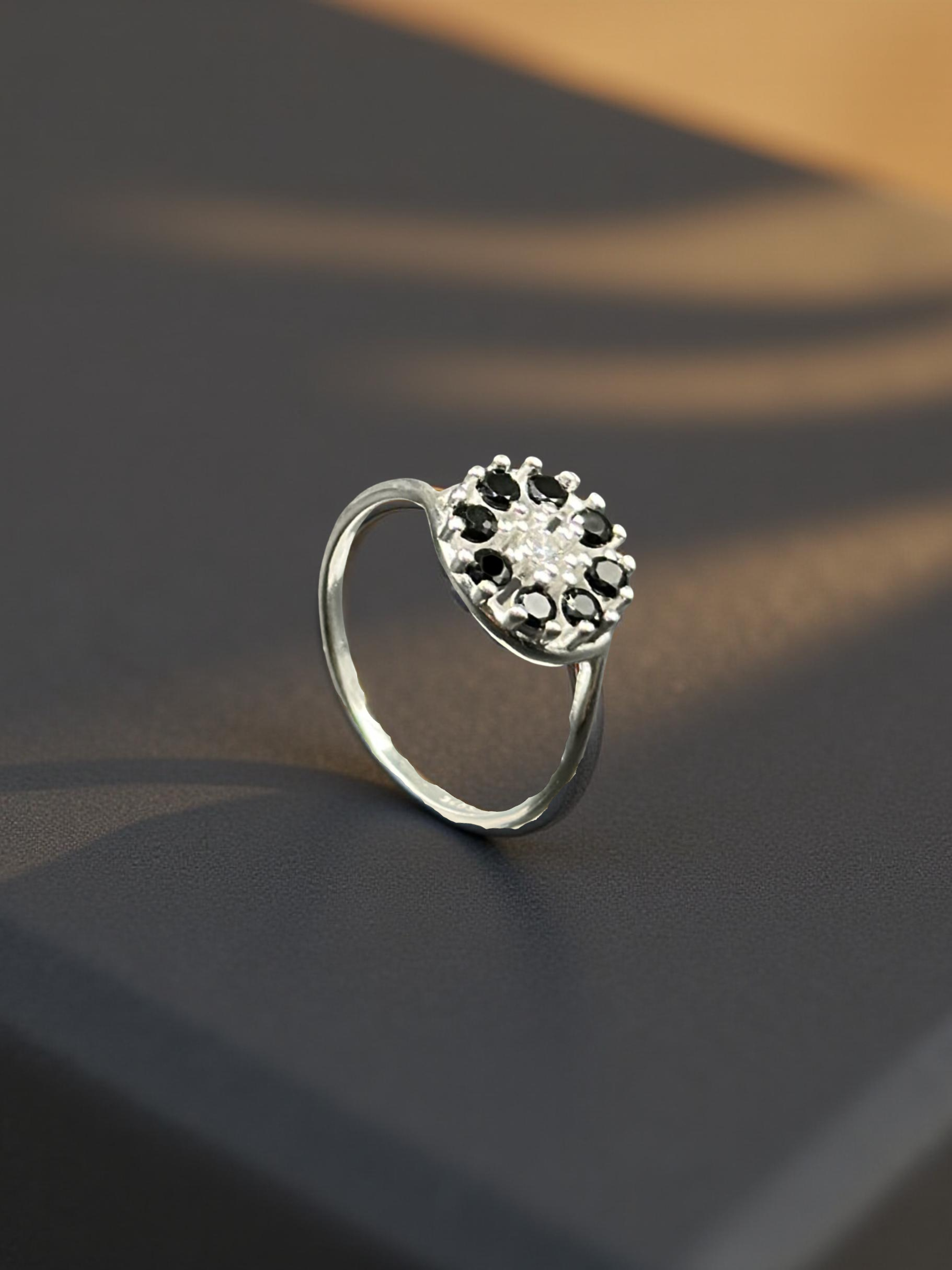 SKU: QZ-SR63 Weight: 1.64g Purity: 925 A regal emerald-cut green gemstone surrounded by dazzling white stones, radiating luxury and timeless elegance.