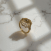 The Golden Mirage Ring is a fine blend of elegance and simplicity. Its subtle floral detailing adds a graceful touch, making it suitable for everyday wear as well as special events.