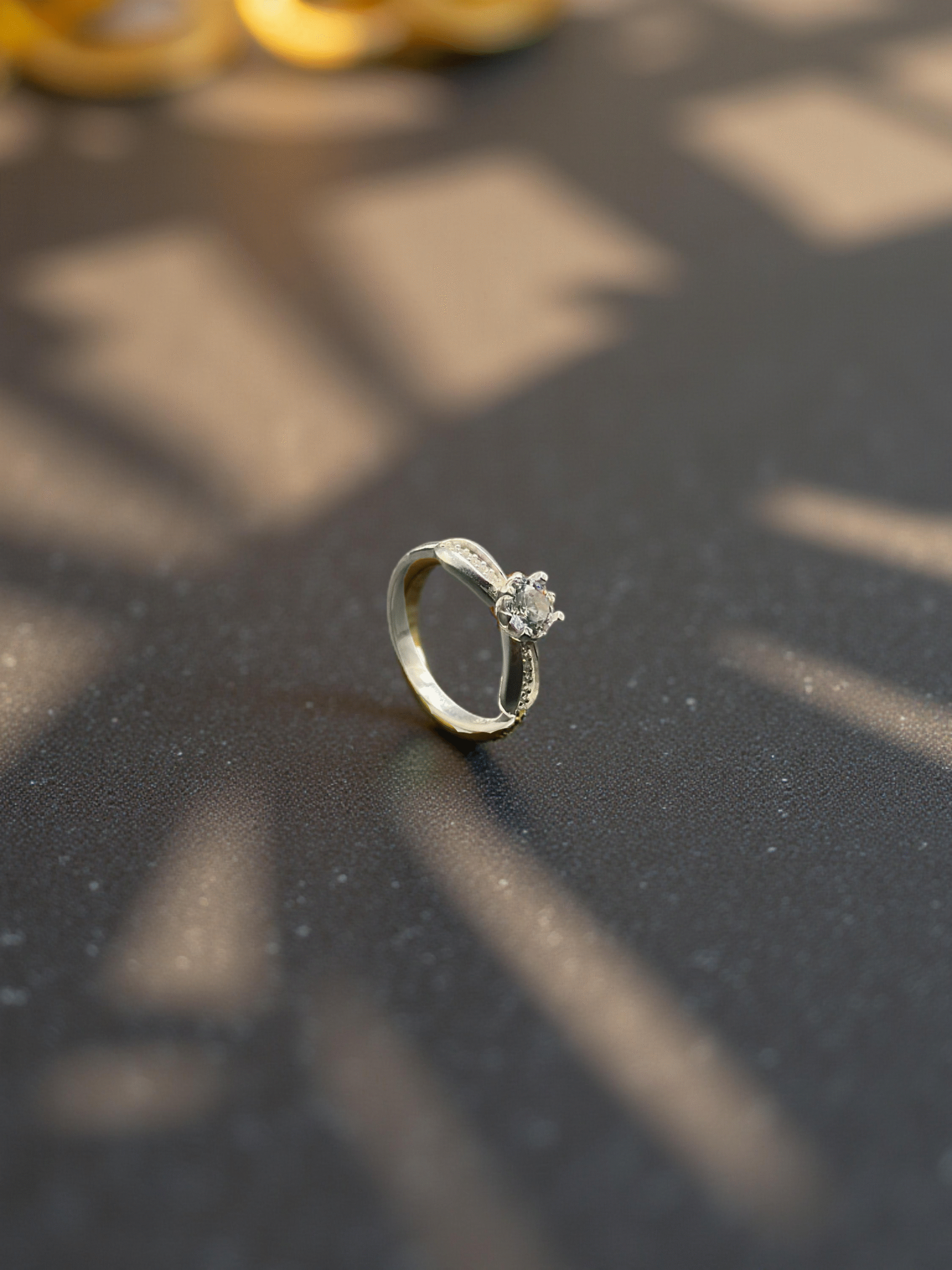 A timeless gold band cradling a single radiant diamond, capturing elegance in its purest form.
