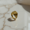 The Regal Mark Ring is a fine blend of elegance and simplicity. Its subtle floral detailing adds a graceful touch, making it suitable for everyday wear as well as special events