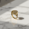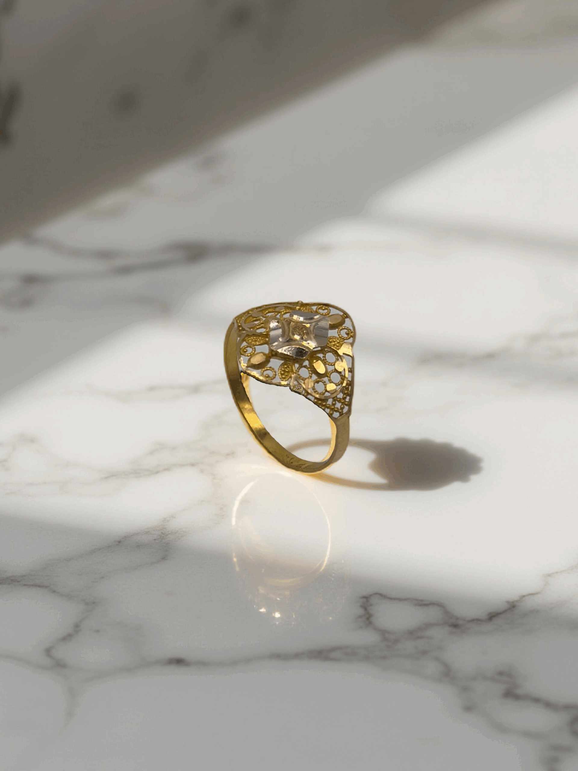 The Regalia Star Ring is a fine blend of elegance and simplicity. Its subtle floral detailing adds a graceful touch, making it suitable for everyday wear as well as special events.
