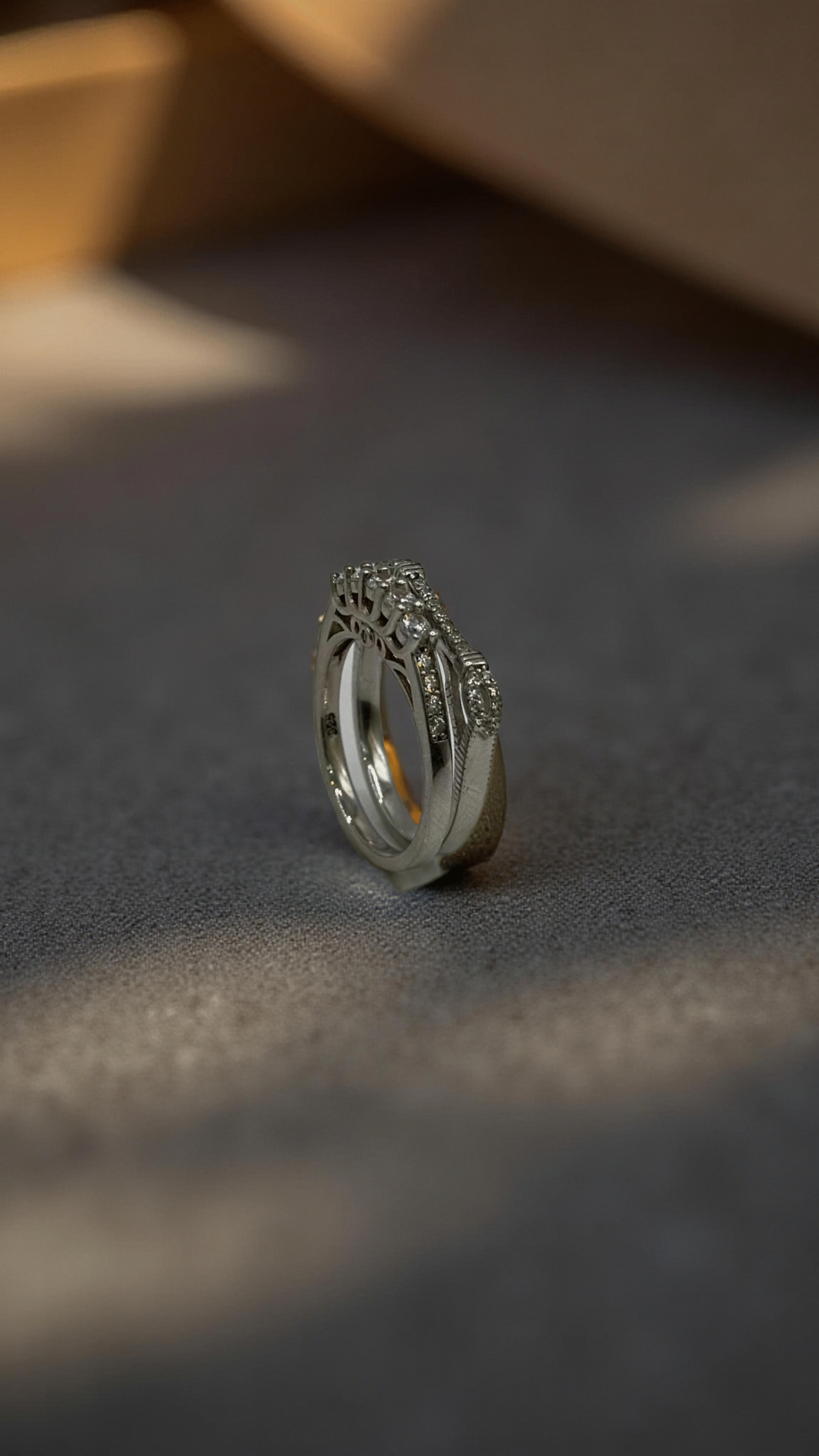 SKU: QZ-SR99 Weight: 5g Purity: 925 Royal Cascade is a regal ring featuring a layered, sparkling design that embodies the graceful flow of a royal cascade, with diamonds delicately set to create a sense of luxury and elegance.