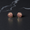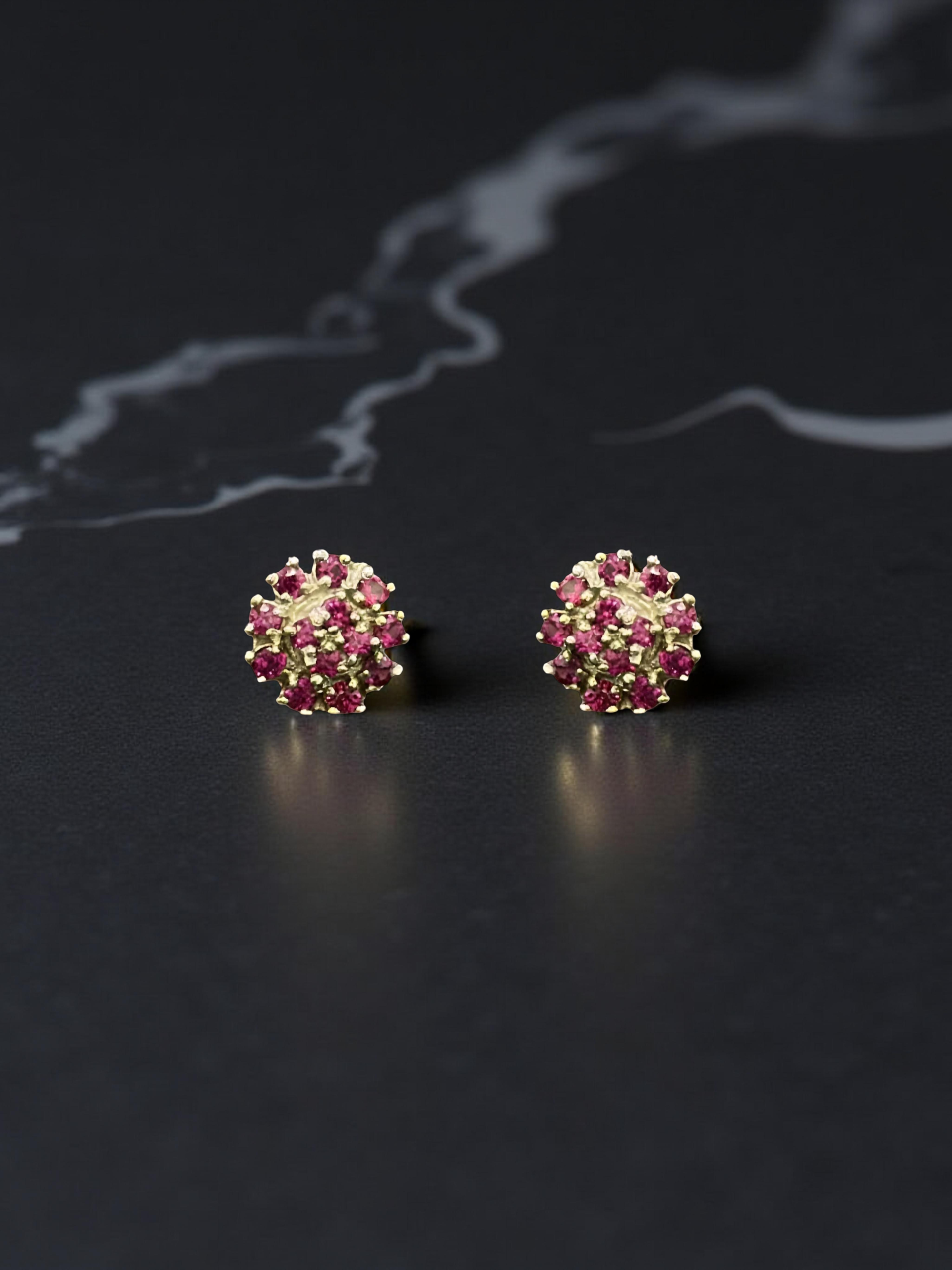SKU: QZ-ST10 Weight: 1.19g Purity: 925 Elegant gold stud earrings featuring a vibrant cluster of sparkling ruby gemstones.