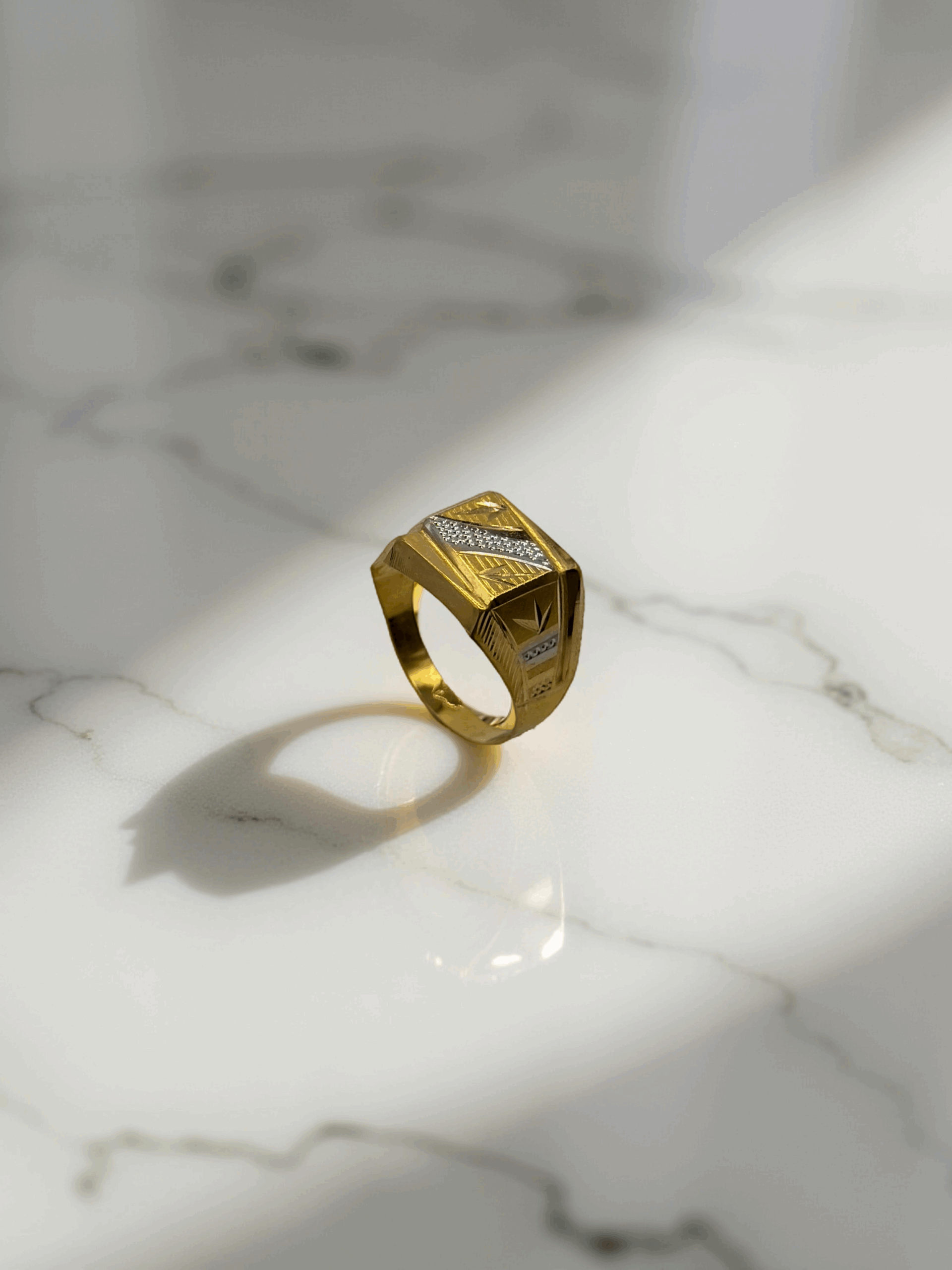The Vanguard Edge Ring is a fine blend of elegance and simplicity. Its subtle floral detailing adds a graceful touch, making it suitable for everyday wear as well as special events.