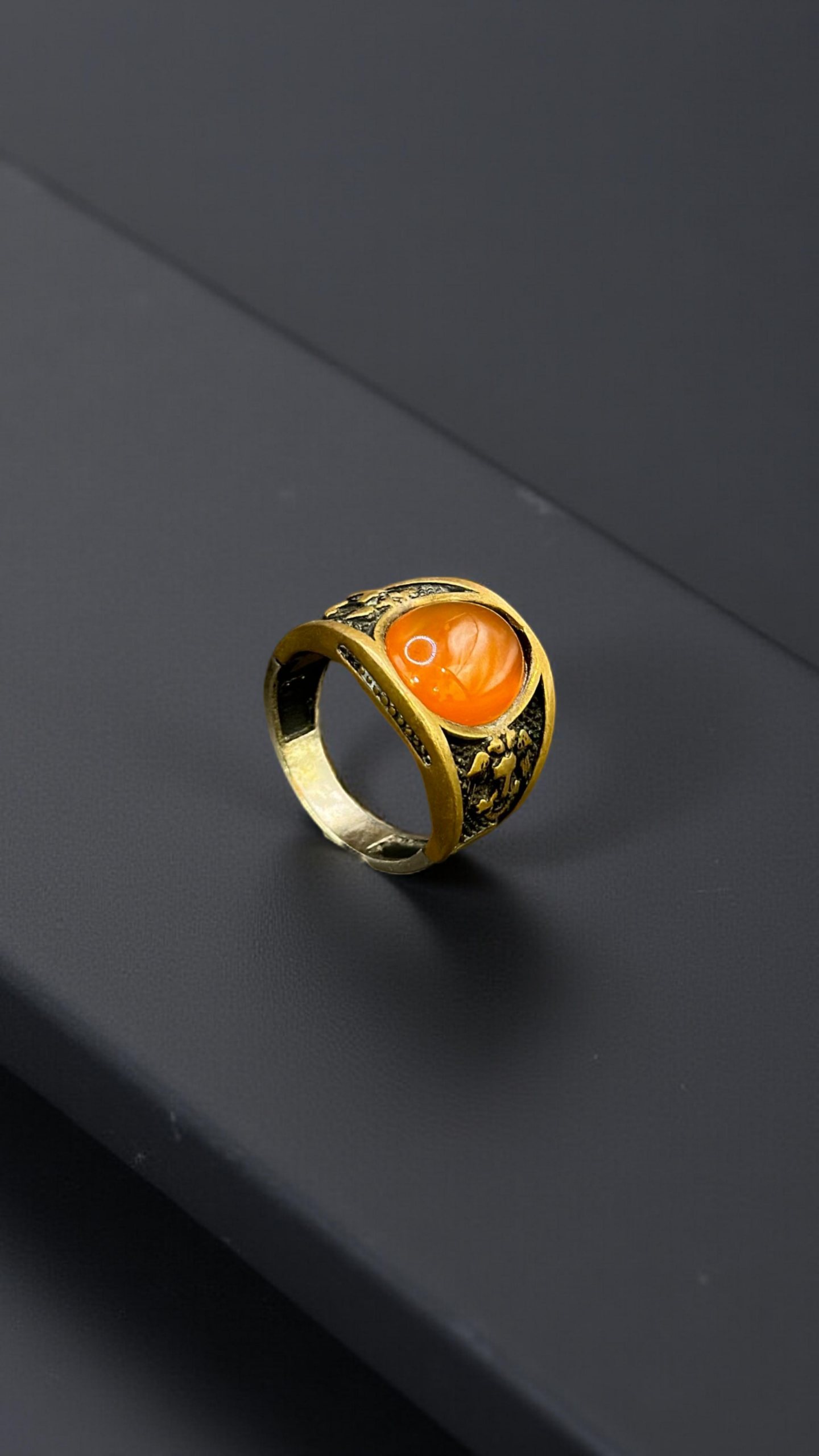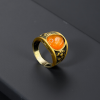 SKU: QZ-SR182 Weight: 9.17g Purity: 925 A bold statement piece featuring a fiery orange gemstone set in intricately carved antique gold, exuding strength and charisma.