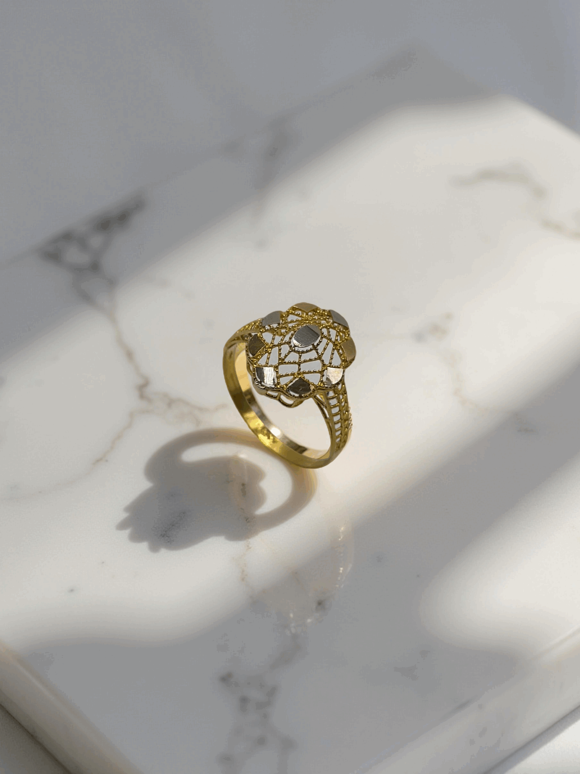 SKU: QZ-R23 Weight: 1.89g Purity: 21k The Artisan Filigree Ring is a fine blend of elegance and simplicity. Its subtle floral detailing adds a graceful touch, making it suitable for everyday wear as well as special events.