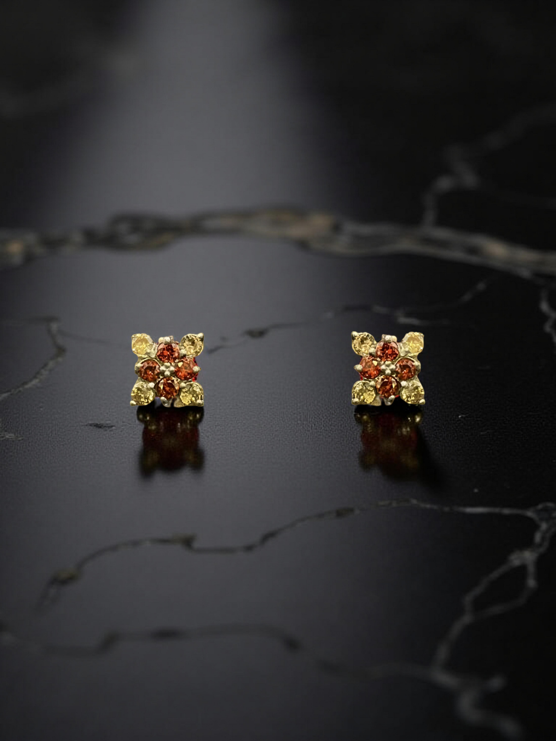 SKU: QZ-ST27 Weight: 0.8g Purity: 925 Delicate floral stud earrings with warm amber and yellow stones set in a gold-tone finish, perfect for a subtle yet vibrant touch.