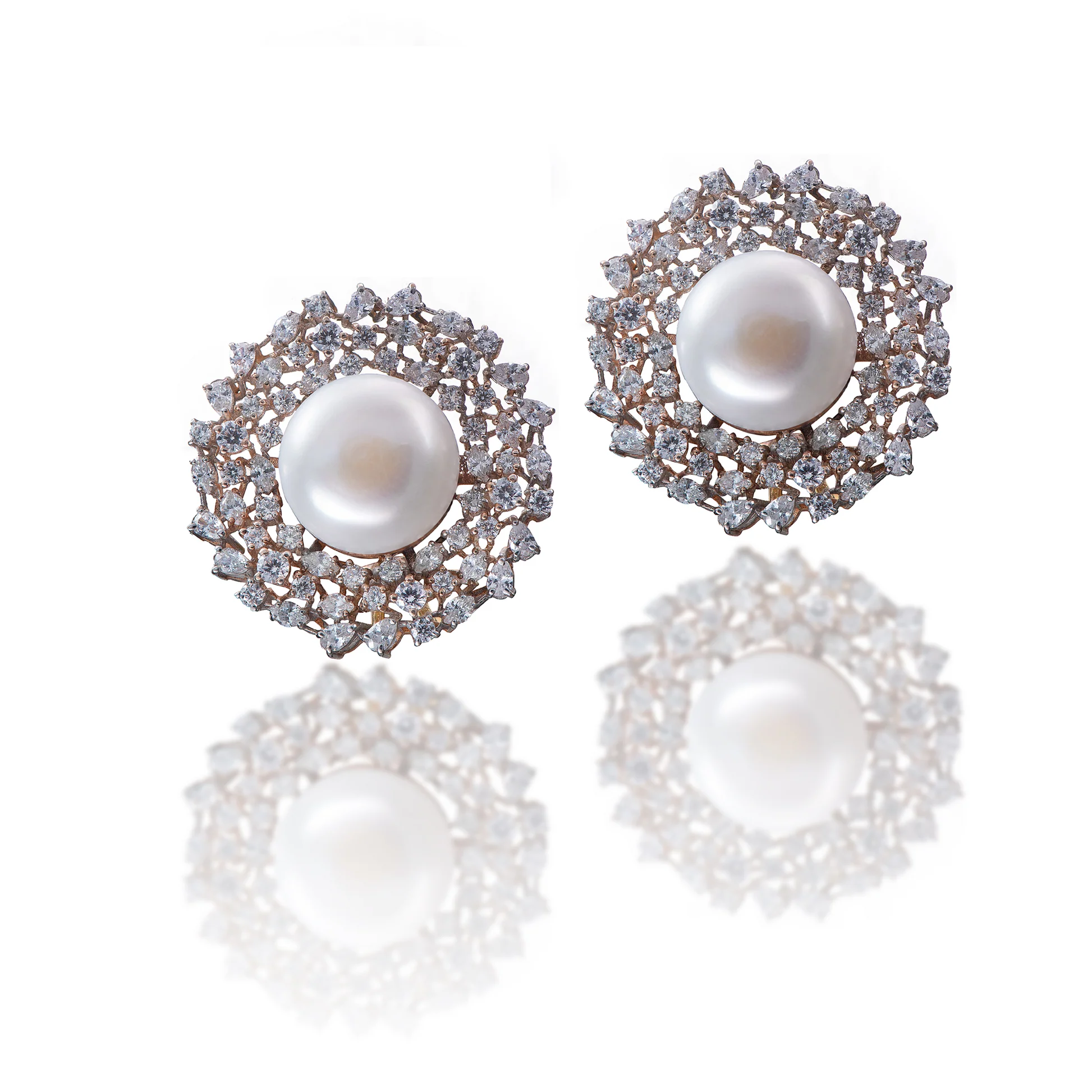 SKU: QZ-ER26 Weight: 26.076g Purity: 21k Featuring radiant pearls encircled by a dazzling constellation of diamonds, these earrings evoke the serene beauty of a starlit night.
