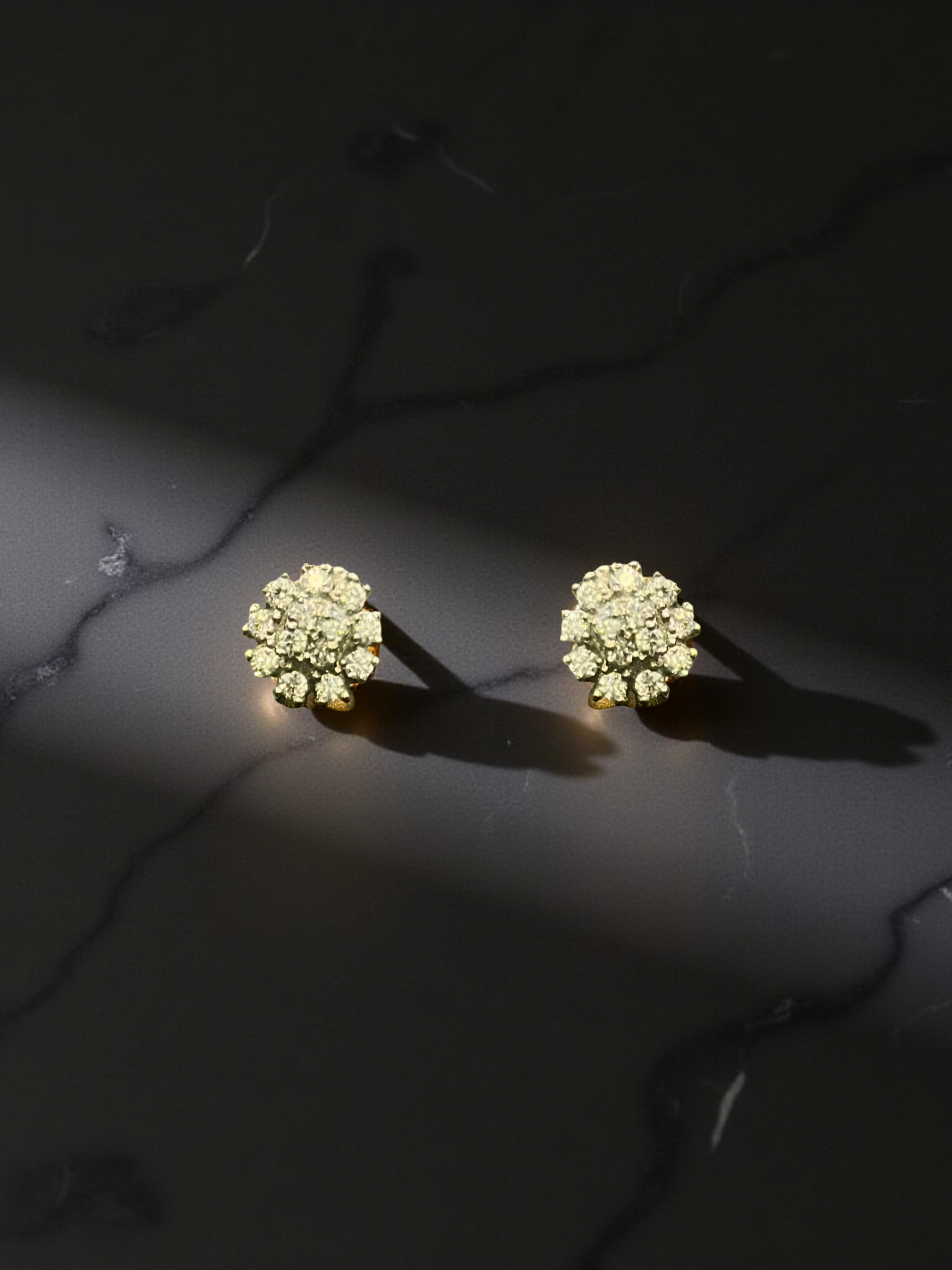 SKU: QZ-ST11 Weight: 1.26g Purity: 925 Dazzling gold stud earrings adorned with a radiant cluster of sparkling diamonds.