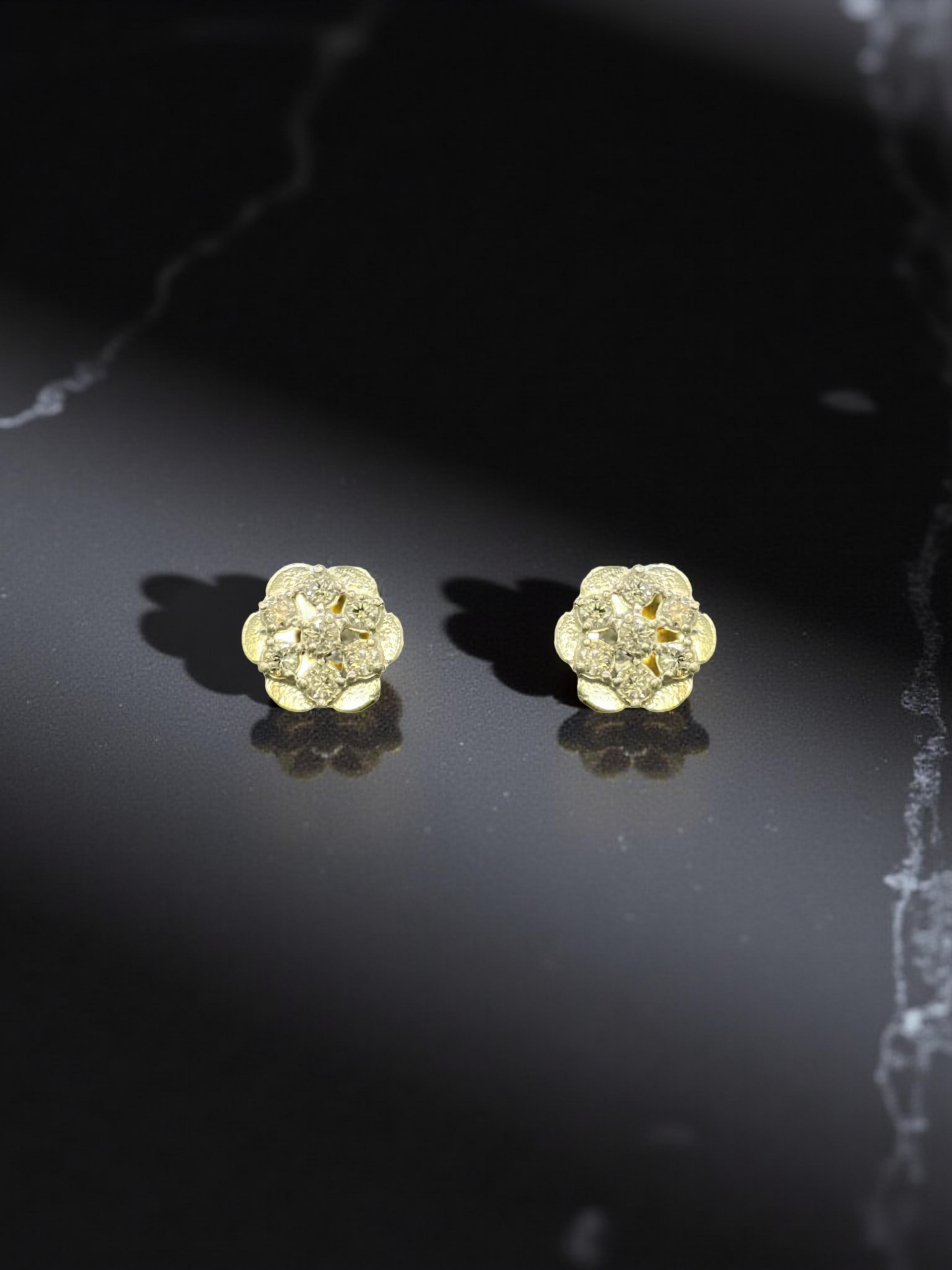 SKU: QZ-ST03 Weight: 1.33g Purity: 925 Delicate flower-shaped studs adorned with clustered clear stones, offering a refined and graceful sparkle for any occasion.