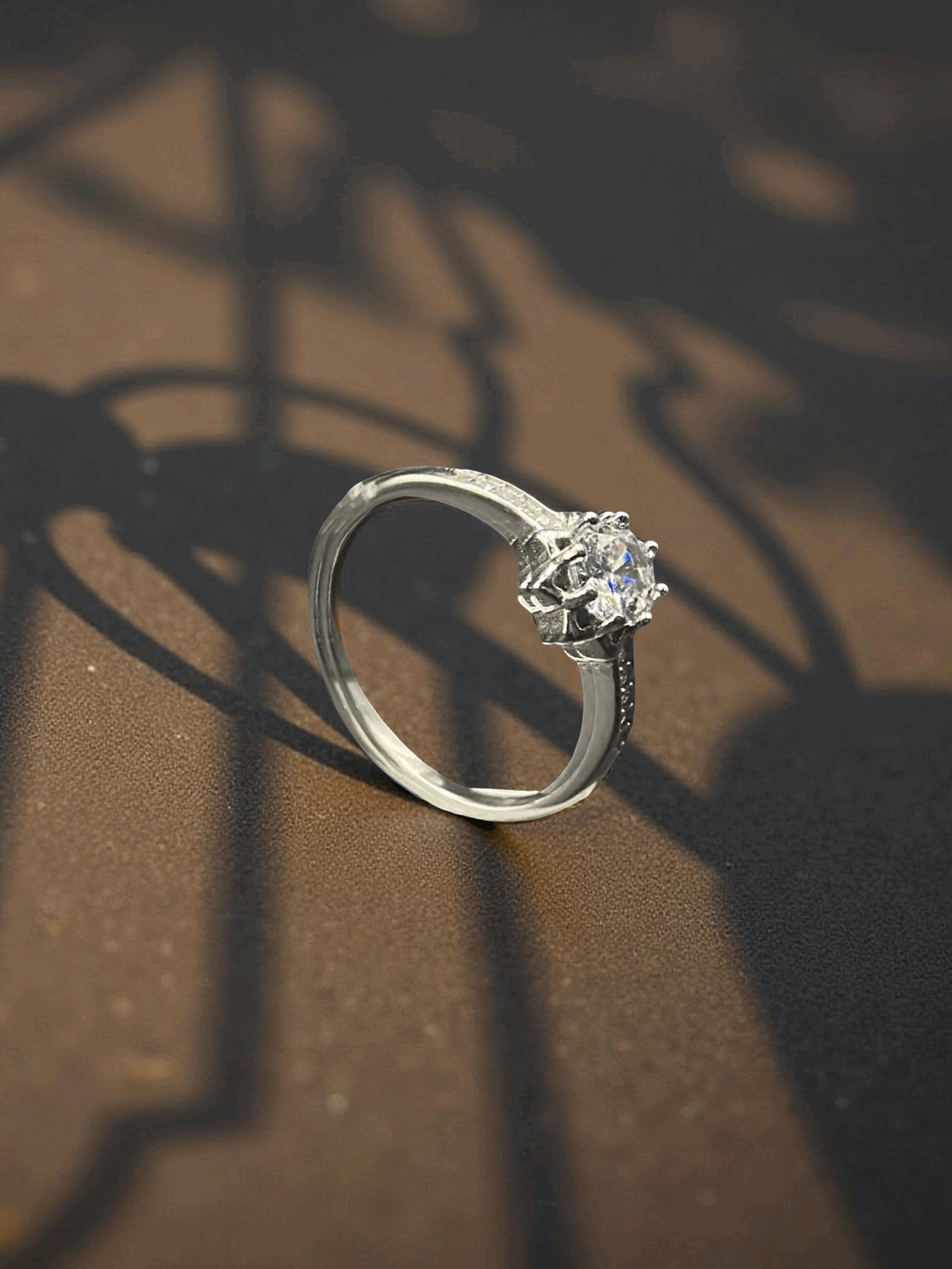 SKU: QZ-SR41 Weight: 2.2g Purity: 925 A graceful solitaire ring featuring a radiant center stone embraced by a blooming floral setting, symbolizing everlasting elegance.