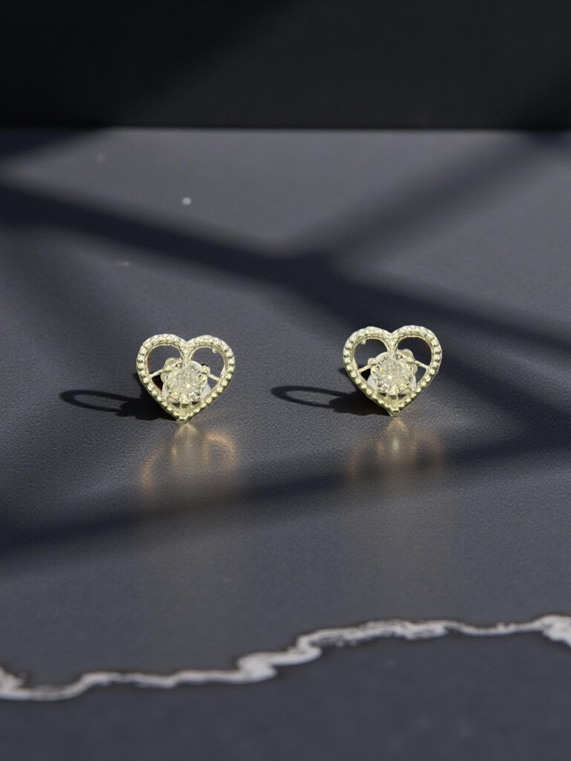SKU: QZ-ST25 Weight: 1.65g Purity: 925 Delicate silver heart-shaped studs with a central sparkling stone accent