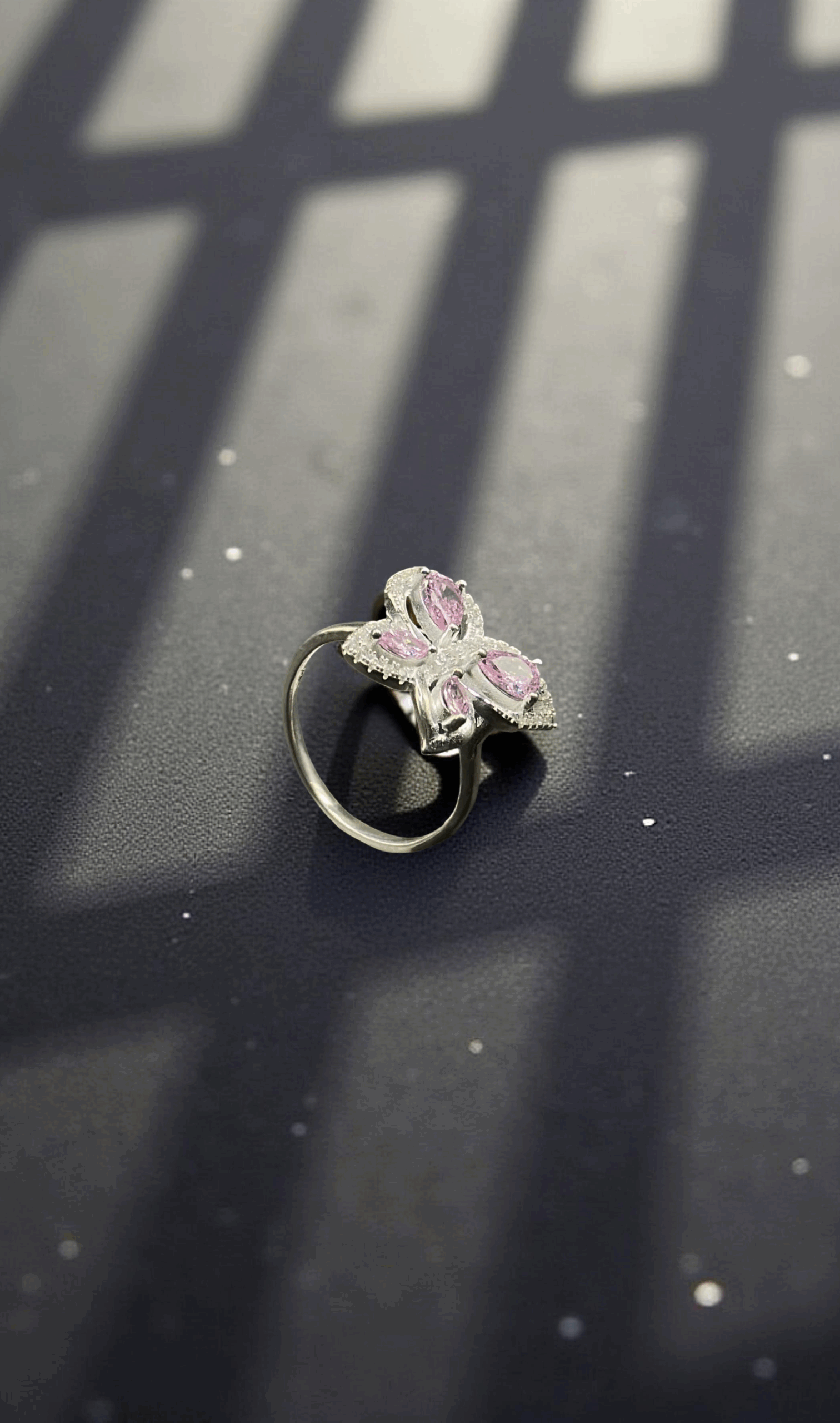 SKU: QZ-SR55 Weight: 4g Purity: 925 A radiant ring featuring a delicate butterfly motif, symbolizing transformation and light-filled beauty.