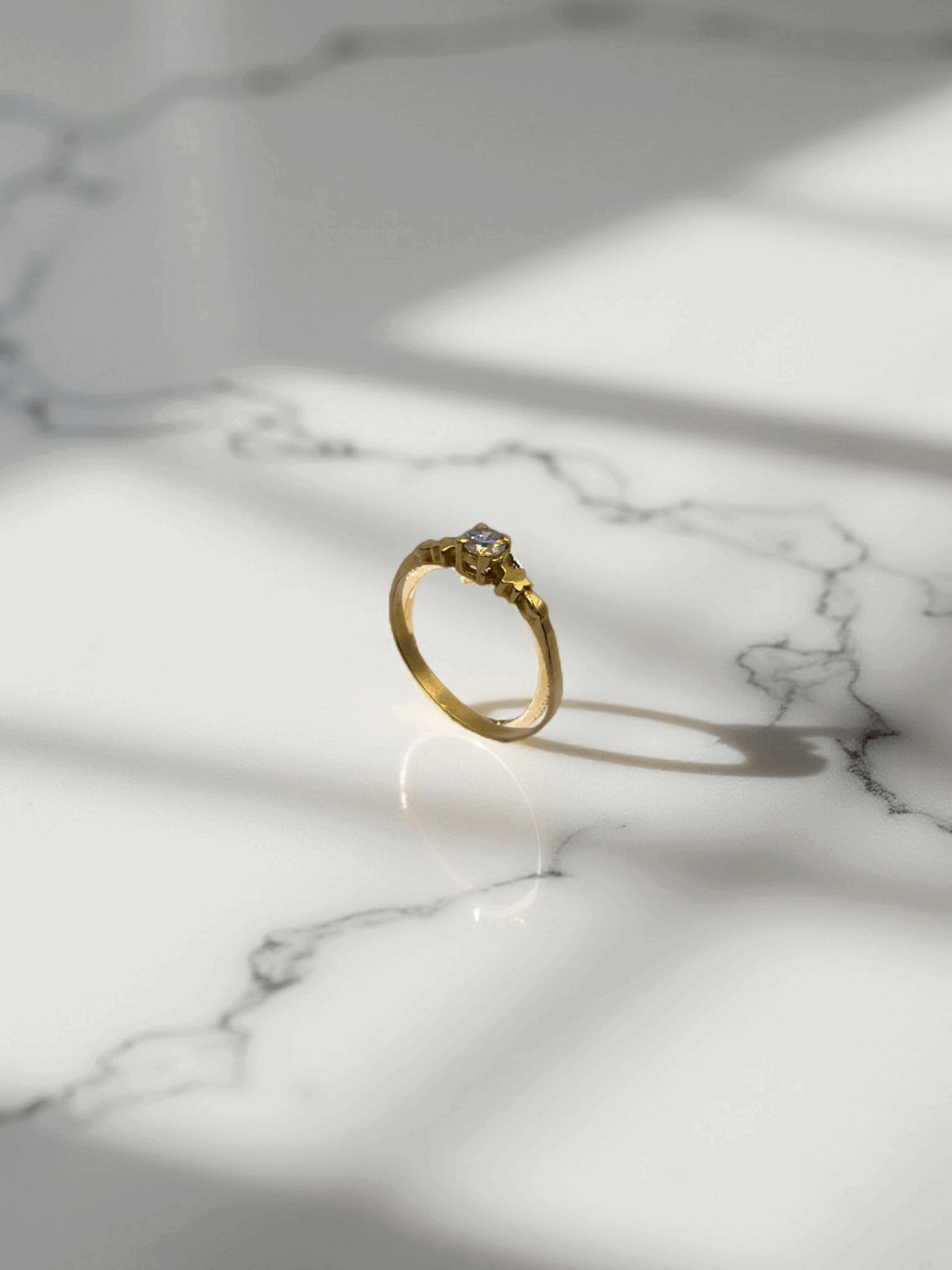 SKU: QZ-R37 Weight: 1.55g Purity: 21k The Gold Blossom Ring is a fine blend of elegance and simplicity. Its subtle floral detailing adds a graceful touch, making it suitable for everyday wear as well as special events.