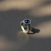 SKU: QZ-SR107 Weight: 5.05g Purity: 925 A regal silver ring crowned with a deep sapphire gem, radiating timeless elegance and bold sophistication.