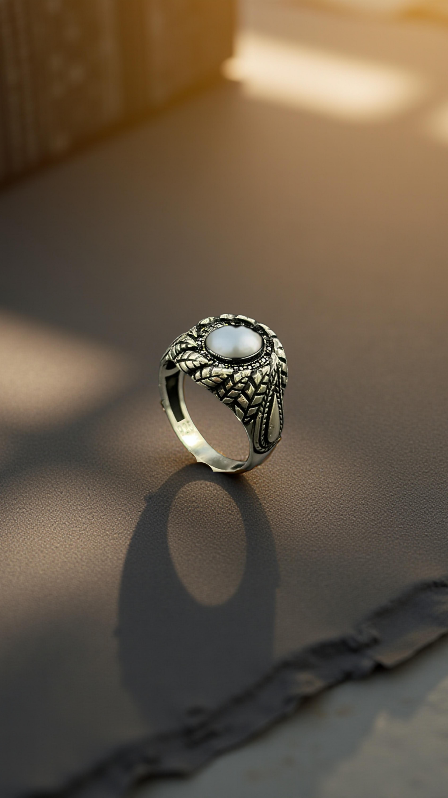 SKU: QZ-SR129 Weight: 6.49g Purity: 925 A mystic ring adorned with a luminous pearl and claw-like engravings that evoke the strength and grace of a celestial beast.