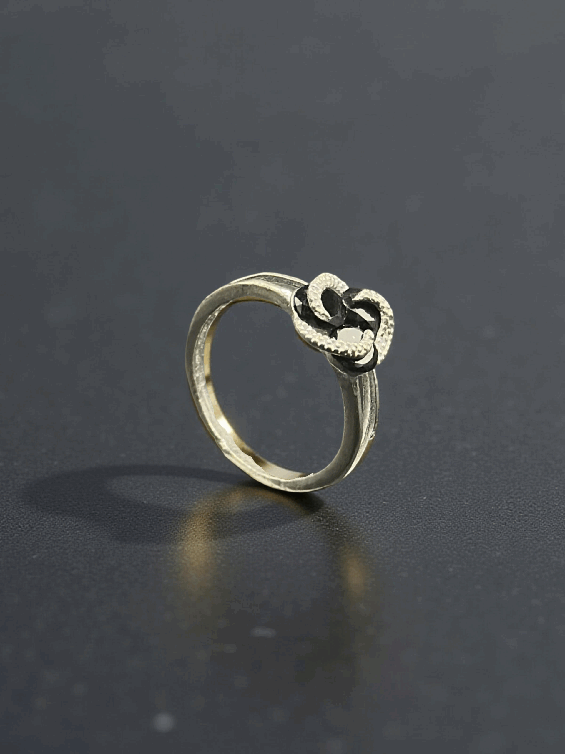 SKU: QZ-SR50 Weight: 2g Purity: 925 A modern ring featuring interlocking textured loops with deep black accents, symbolizing unity and bold sophistication.