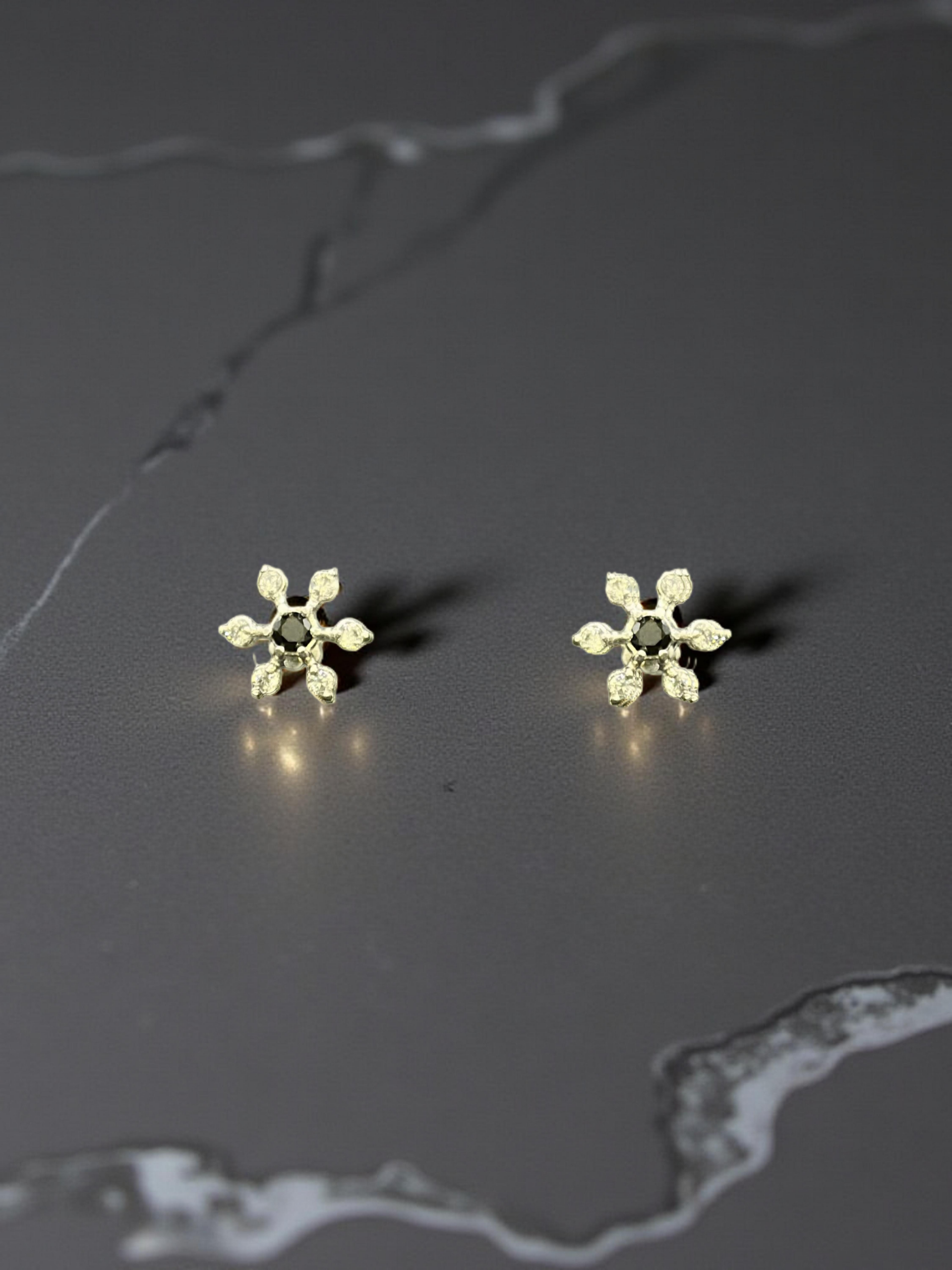 SKU: QZ-ST22 Weight: 0.95g Purity: 925 Chic floral-inspired earrings with a bold black center stone surrounded by delicately crafted diamond-like petals.