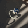 SKU: QZ-SR61 Weight: 2.72g Purity: 925 A striking floral ring adorned with deep blue marquise stones and a shimmering accent, capturing the elegance of twilight blooms.