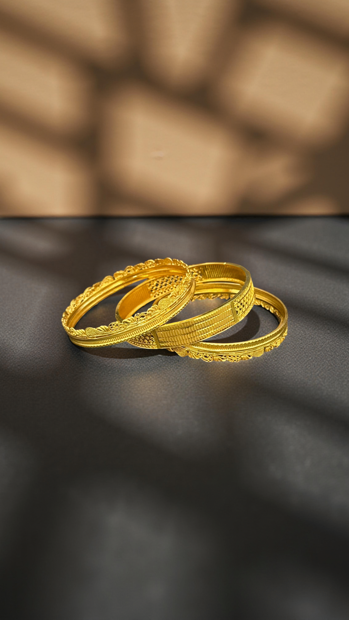 SKU: QZ-GB05 Weight: 29.16g Purity: 21k Draped in ornate textures and rich patterns, these bangles exude majestic charm — a true statement of timeless beauty.