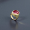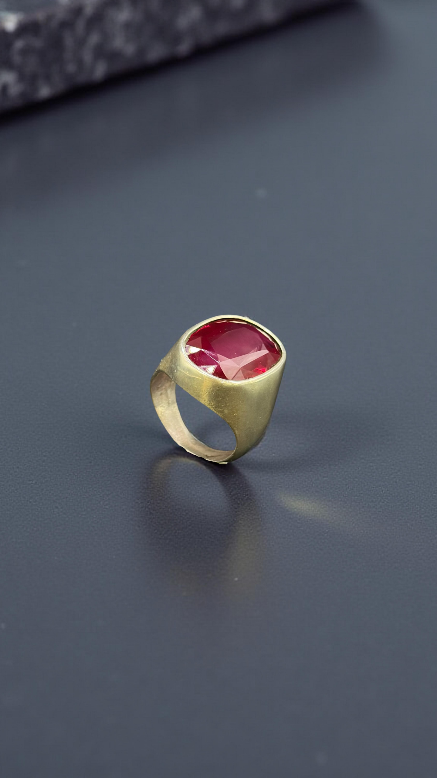 SKU: QZ-SR185 Weight: 19.74g Purity: 925 A bold silver ring showcasing a large, faceted ruby-red gemstone for a striking look.