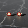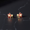 SKU: QZ-ST29 Weight: 1.33g Purity: 925 Elegant floral stud earrings featuring radiant red rubies set in a gold-tone finish, perfect for adding a touch of charm to any look.