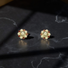 SKU: QZ-ST17 Weight: 1.32g Purity: 925 Elegant gold studs featuring a central diamond surrounded by alternating diamonds and rubies in a floral design.