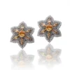 SKU: QZ-ER33 Weight: 21.78g Purity: 21k Radiating elegance, these floral-inspired earrings feature fiery orange gemstones embraced by a dazzling halo of white diamonds.