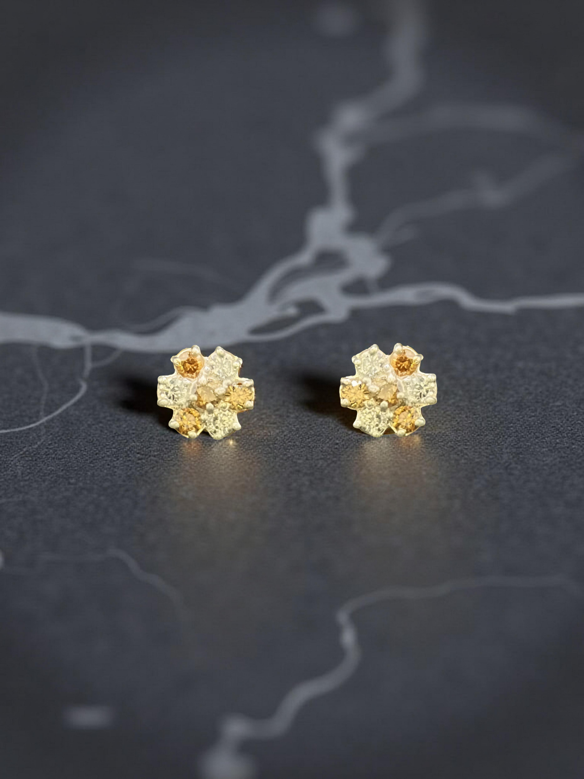 SKU: QZ-ST02 Weight: 0.81g Purity: 925 Dainty silver-tone earrings with a textured star-like design, accented by warm amber stones for a subtle yet striking sparkle.