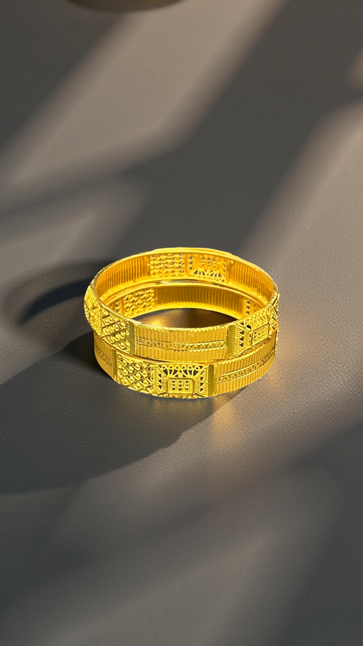 SKU: QZ-GB01 Weight: 23.33g Purity: 21k A bold blend of tradition and modern artistry, Zarifa Glow features detailed lattice patterns that shine with timeless elegance.